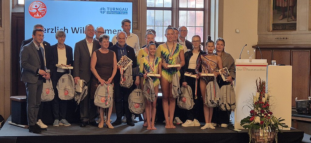 Anschließend ging es für alle geladene Gäste zur akademischen Feier in den Kaisersaal im Römer. In dieser besonderen Ambiente gab es einen kurzweiligen Mix aus Musik seitens des Blasorchesters der SU Mühlheim, einer Festrede des Oberbürgermeisters Mike Josef, zwei kurzen sportlich-politischen Diskussionsrunden sowie zwei atemberaubende sportliche Darbietungen. Anschließend gab es noch einen Jubiläums-Imbiss.